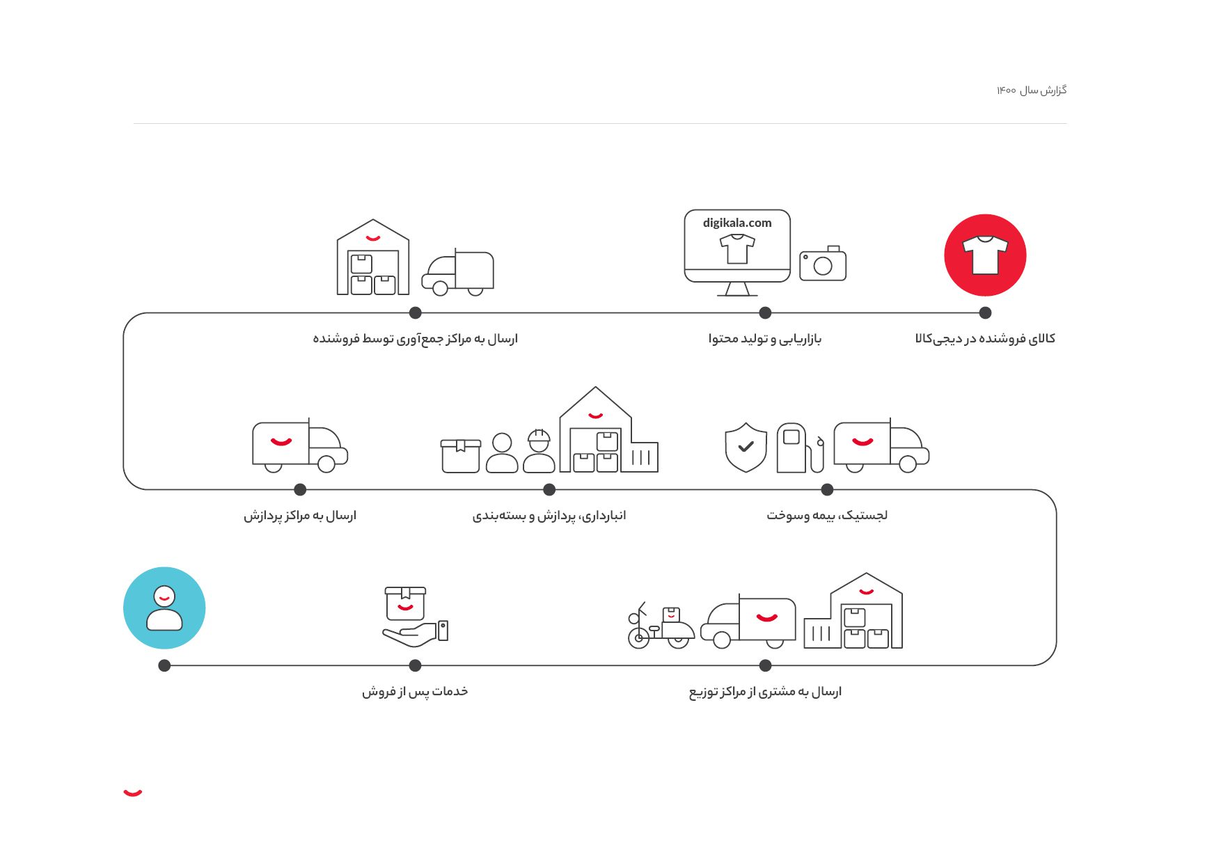 راهاندازی یک کسب و کار الکترونیک شاید در نگاه اول کار آسانی باشد اما در تجارت الکترونیک شما نمیتوانید پول را از خریدار بگیرید و در همان لحظه کالا را به او تحویل دهید. این پروسه چند مرحله دارد. خدمات لجستیکی، انبارداری، پرداخت، بستهبندی، بازاریابی، تولید محتوا، بینش بازار، و خدمات پس از فروش، از جمله پیشنیازهایی است که یک فعال بازار تجارت الکترونیک باید آنها را به طور کامل و دقیق در اختیار داشته باشد. سخت شد، نه؟ اما جای نگرانی نیست. دیجیکالا به عنوان یک مارکتپلیس یا بازارگاه معتبر و مجهز همه این امکانات را در اختیار کسانی که میخواهند تجارت الکترونیک راه بیندازند میگذارد. در فصل چهارم گزارش سال 1400 دیجیکالا میخوانید که مارکتپلیس بستری است که امکان خرید از چند ده هزار تامین کننده متفاوت را برای مشتریان فراهم میکند. همه علاقمندان به تجارت الکترونیک اعم از تولیدکنندگان، خرده فروشان، مشاغل محلی و خانگی، هنرمندان و صنعتگران و شرکتهای بازرگانی این فرصت را دارند تا با استفاده از امکانات دیجیکالا پا به این عرصه بگذارند. در این بین دیجیکالا فعالیتهایی مثل بهکارگیری مرکز پردازش، تبلیغات بازرگانی، مرکز فروشندگان و تولید محتوا را انجام میدهد. در نهایت هم با استفاده از ناوگان لجستیکیاش، کالاهای فروخته شده را در اختیار مصرف کنندگان شخصی و مصرف کنندگان سازمانی میگذارد. دیجیکالا با توسعه پلتفرم مارکتپلیس خود در سال 1395 برای خدمترسانی به فروشندگان باعث شد که بسیاری از تامین کنندگان و تولید کنندگان، بدون دغدغههای فنی و زیرساختی، کالاهای خود را عرضه کنند و به این ترتیب به پایگاه کاربران دیجیکالا و شبکه گسترده و ملی توزیع دیجیکالا دسترسی داشته باشند.