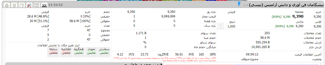 میزان ۵۸ میلیون و ۶۰۰ هزار سهم شرکت پیشگامان فن آوری و دانش آرامیس (تپسی) معادل ۵ درصد کل سهام این شرکت به قیمت 939 تومان توسط صندوقهای سرمایه گذاری قابل معامله و صندوقهای سرمایه گذاری مشترک ثبت شده نزد سازمان بورس و اوراق بهادار خریداری شد.