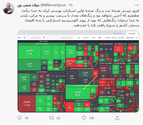 میلاد منشی پور مدیرعامل تپسی پس از این عرضه اولیه توییت زیر را منتشر کرد.