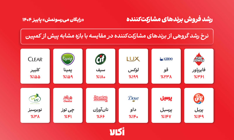 گفتنی است که در جریان کمپین پاییز ۱۴۰۴ اُکالا، گروهی از برندها در جایگاه فروش اُتایم تا ۶ برابر رشد فروش را نیز تجربه کردهاند.