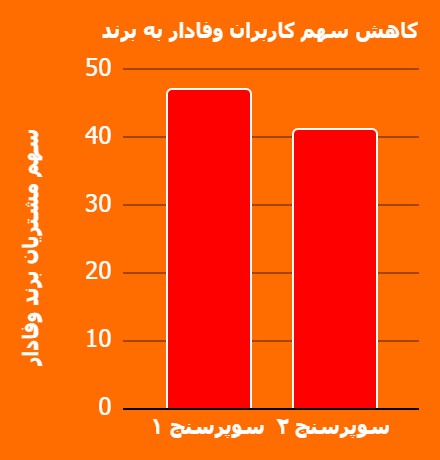 این شاخص، رفتار کاربران در مقابل تکرار خرید از برندها را بررسی میکند. B (وفادار به برند) در برابر E (تجربهگر). سهم کاربران وفادار به برند در سوپرسنج ۲ کاهش یافته است.
