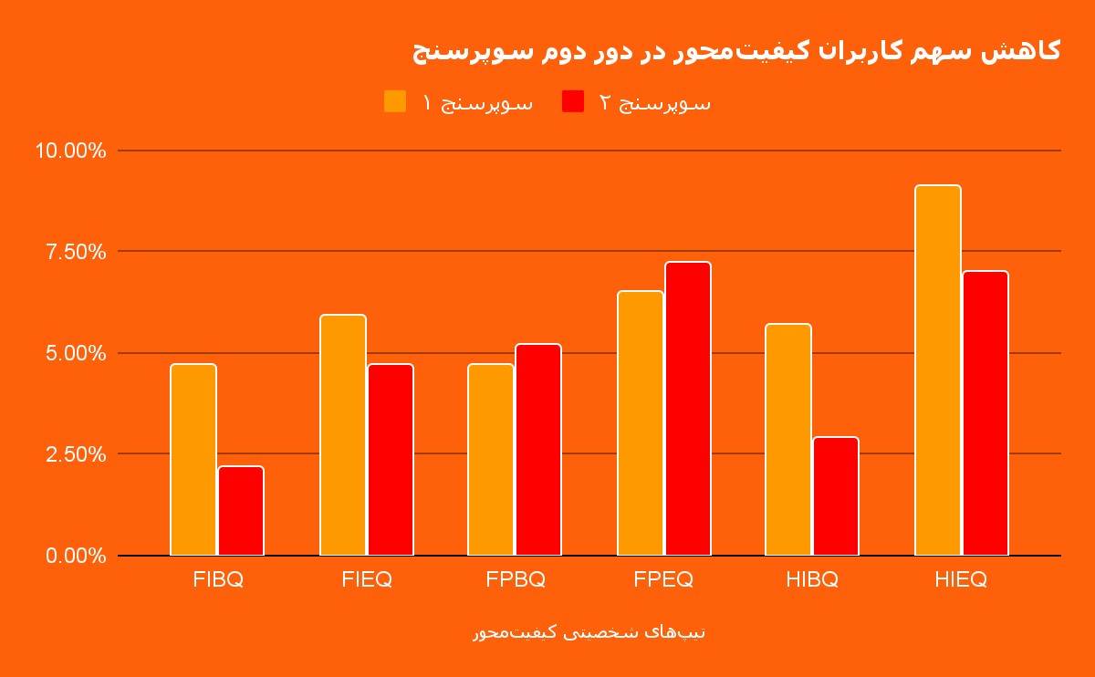 بیشترین رشد نسبی در دوره دوم سوپرسنج ۲ متعلق به FPES (لذتجو، برنامهریز، تجربهگر، حساس به قیمت) است. شاهدی دیگر بر افزایش سهم برنامهریزی و حساسیت به قیمت در میان کاربران.