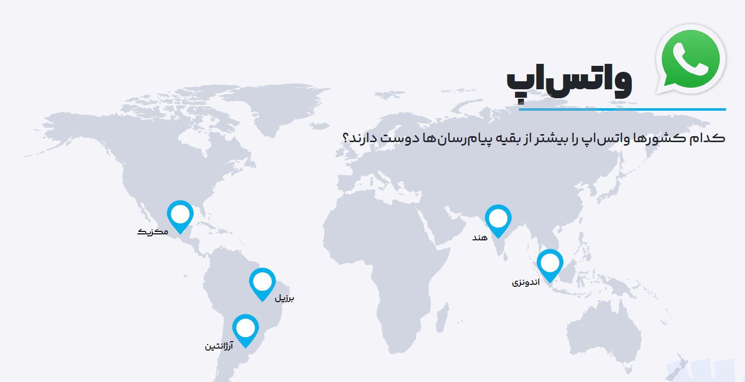 واتس اپ با 2 میلیارد کاربر بیشترین میزان یوزر را در میان پیام‌رسان‌ها دارد و کشورهای زیر بیشترین کاربران واتس اپ را تشکیل داده‌اند.