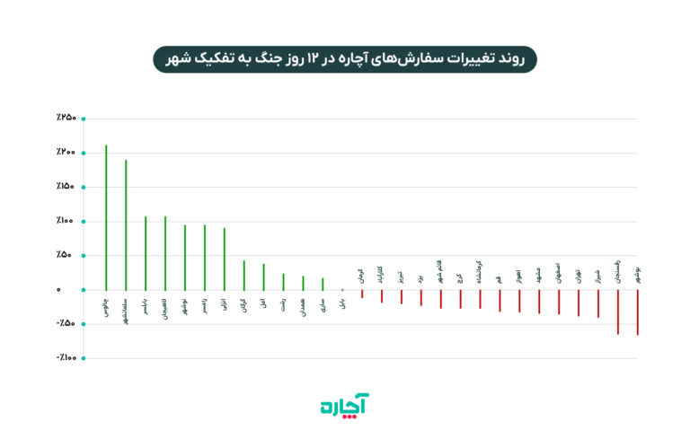 براساس این گزارش، تقاضا برای خدمات آچاره در تهران حدود ۴۰ درصد کاهش یافت، در حالی که شهری مانند چالوس در شمال کشور، رشدی بیش از ۲۰۰ درصدی را در تعداد سفارشها به ثبت رساند.