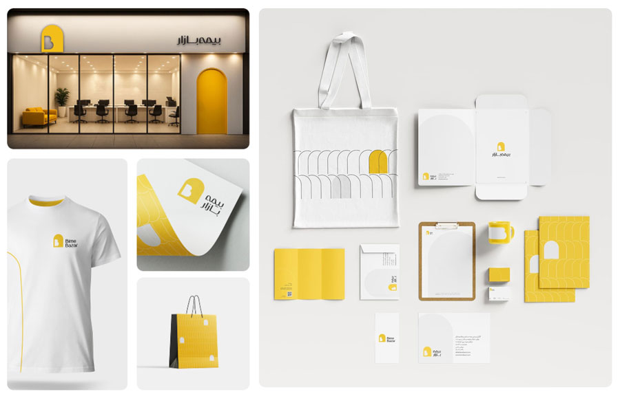 هویت بصری جدید بیمهبازار، لوگویی مدرن و در عین حال معنادار و الهامگرفته از «طاق ایرانی» است که در بازار و معماری اصیل ایرانی دیده میشود. این «طاق» نمادی از پناه، امنیت و استحکامی است که بیمهبازار متعهد به ارائه آن به مشتریان خود است.