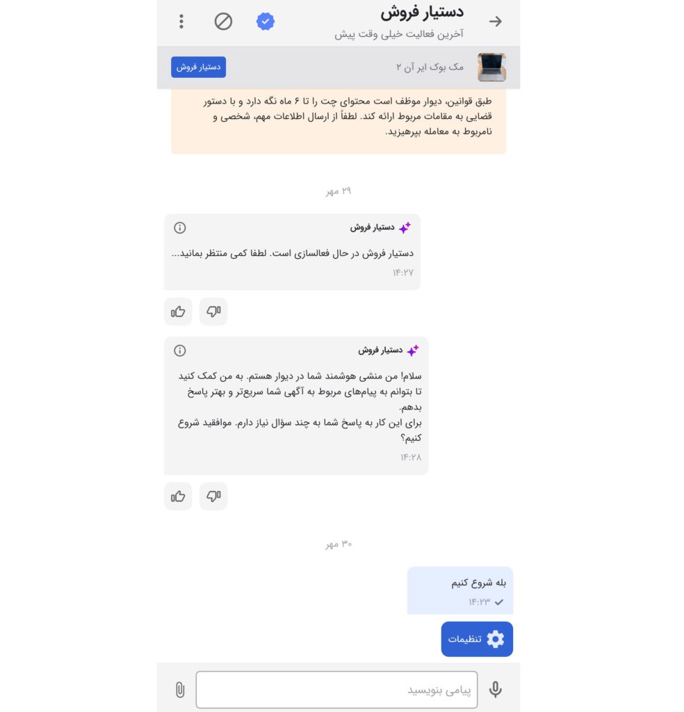 گزارشدهی هوشمند: این دستیار گزارشهای روزانه از عملکرد آگهی و تعاملات صورتگرفته را در اختیار فروشنده قرار میدهد و پیشنهادهایی برای بهبود بازدهی آگهی ارائه میکند.