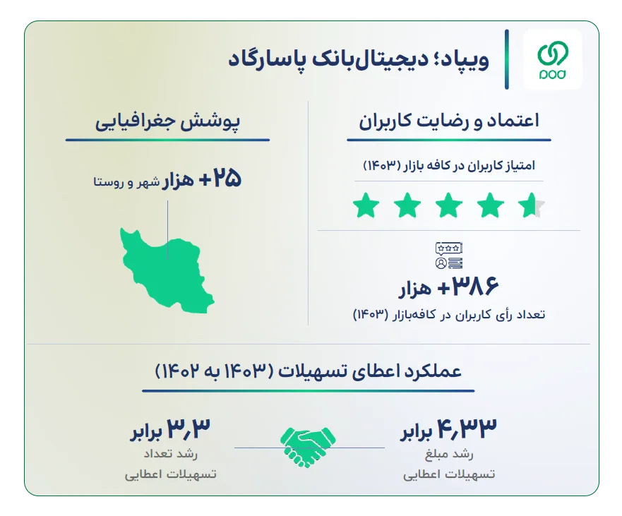 عملکرد ویپاد صرفاً در شاخصهای مالی خلاصه نمیشود. طبق این گزارش، خدمات ویپاد اکنون بیش از ۲۵ هزار شهر و روستا در سراسر کشور را پوشش میدهد. این عدد نشاندهنده تحقق عملی مفهومی است که سالها در ادبیات بانکداری ایران تکرار شده: توسعه دسترسی آحاد جامعه به خدمات مالی. برای بخش قابل توجهی از کاربران، ویپاد امکان دریافت تسهیلات را بدون نیاز ضامن و وثیقه، آنلاین و در کمتر از دو دقیقه فراهم کرده است؛ الگویی که فناوری را در خدمت کاهش شکاف جغرافیایی قرار میدهد.